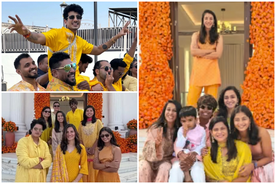 स्मृति मंधाना और पलाश मुच्छल की हल्दी सेरेमनी में छाया येलो का जादू, टीम इंडिया की खिलाड़ी भी रही शामिल
