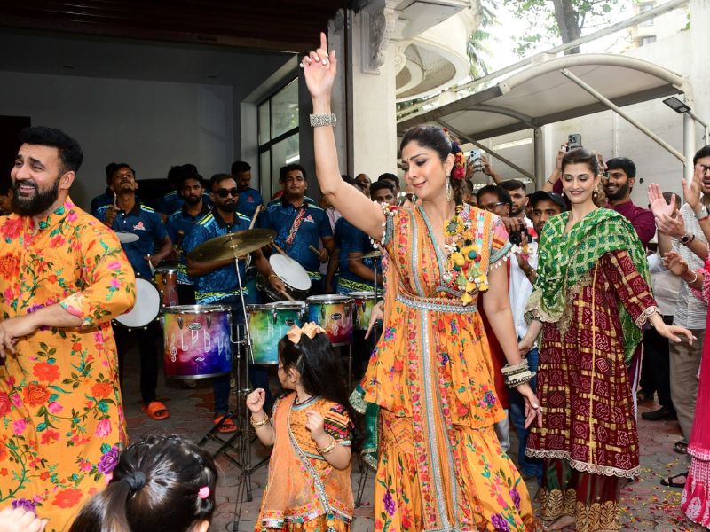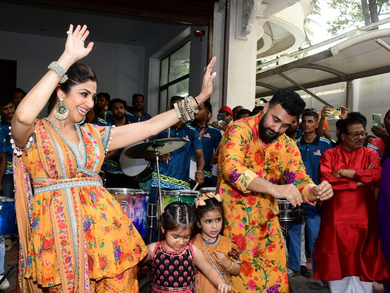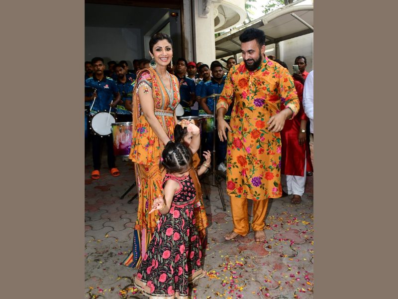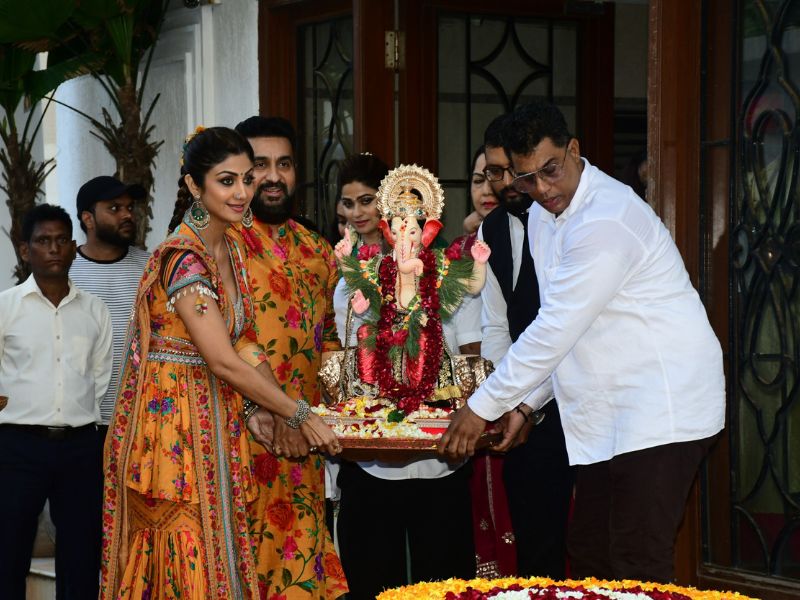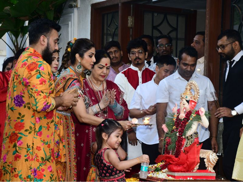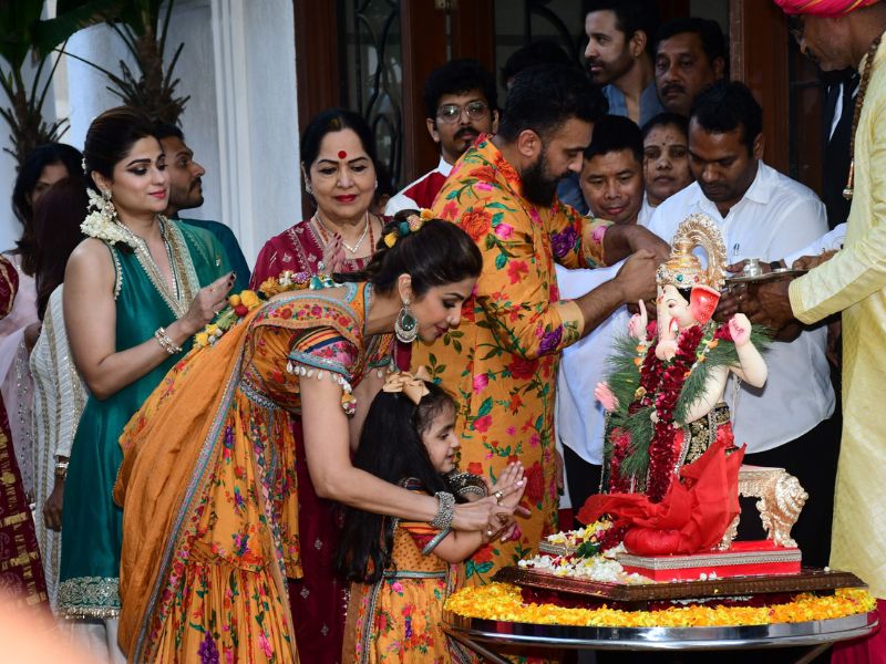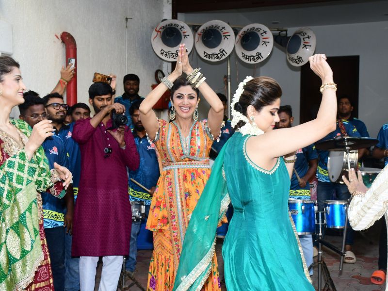 Shilpa Shetty And Shamita Shetty Ganpati Bappa Immersion At Her Residence